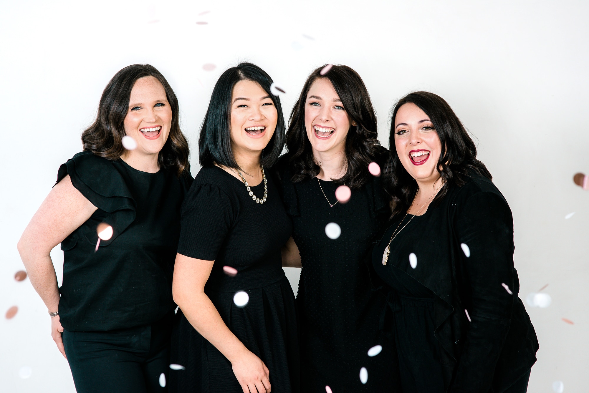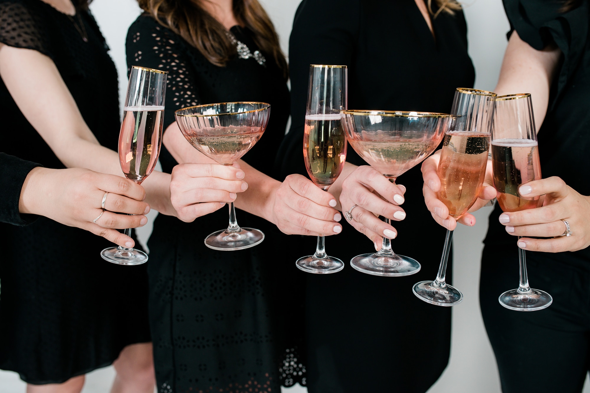 Showing their fun with lots of champagne, black outfits and blush and of course a ton of confetti!